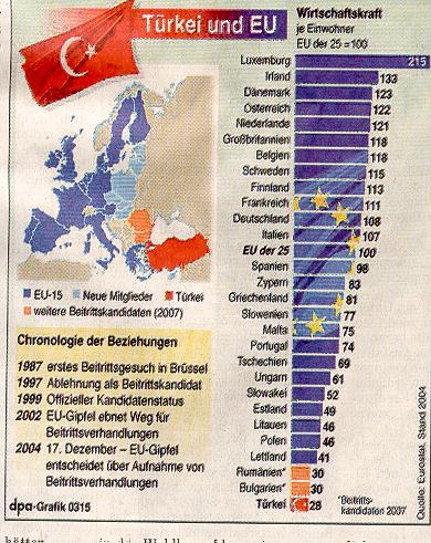 Andersherum wird ein Schuh draus: Wenn die Eingliederung der bereits in Deutschland lebenden knapp drei Millionen Türken heute nicht gelingt, wie soll dann die Aufnahme von ca. 90 Millionen Türken in die EU in zehn oder 15 Jahren klappen? Und der Beitritt der Türkei wird kommen, denn bis dato haben alle Beitrittsgespräche (mit Ausnahme Norwegens) zur EU-Vollmitgliedschaft geführt.