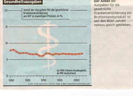 Die Entwicklung seit den 80er Jahren scheint Schartau Recht zu geben. Zwischen 1980 und 2002 stiegen die Ausgaben der GKV von 45,9 Mrd.E auf 143,6 Mrd. E jährlich.