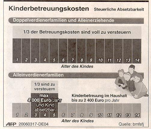 Pflege von Angehörigen: Von den Kosten für die Betreuung einer pflegebedürftigen Angehörigen können seit Jahresanfang 20 Prozent direkt von der Steuerschuld abgezogen werden, maximal 1200 Euro pro Jahr. Bei einer Pflegekraft, die 400 Euro im Monat verdient, steuert das Finanzamt also 80 Euro im Monat bei. Wer den Steuervorteil von 1200 Euro voll ausschöpfen will, muss der Pflegekraft 500 Euro bezahlen.