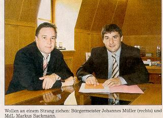 Jetzt will Sackmann ein Gespräch mit Staatssekretär Franz Meyer vom Finanzministerium vermitteln, um bei diesem auszulosen, wie der finanziell angeschlagenen Stadt über den Kommunalen Finanzausgleich bei der Bedarfszuweisung geholfen werden kann. Meyer sei ein "kommunalfreundlicher Mann". Es müsse nach Möglichkeiten gesucht werden, wie die finanzielle Situation bewältigt werden kann, wobei Sackmann an entsprechende Fördersätze dachte.