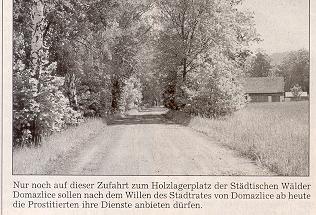 Wie Benda auf Anfrage berichtete, werden auf dieser Allee die leichten Mädchen auf ihre Freier warten. Von dort würden sie dann allerdings wieder wegfahren und sich vermutlich mit ihren Freiern zu den Waldeingängen begeben, wo inzwischen das Problem der Verschmutzung schon sehr groß sei.