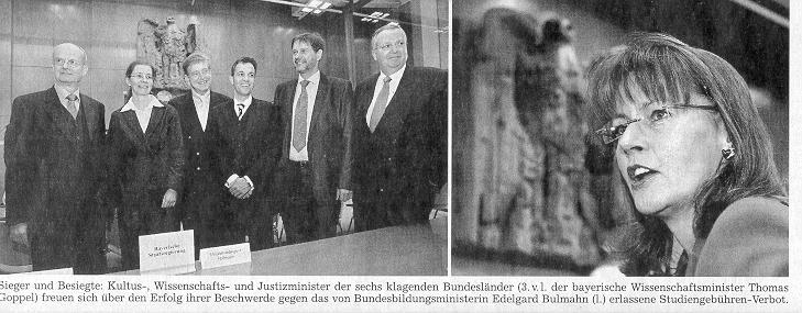 Für Bundesbildungsministerin Edelgard Bulmahn war das zweifellos ein schwarzer Tag: Das Bundesverfassungsgericht