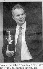 Als man im letzten Jahr die Politik verschärfen wollte, kam es darüber fast zum Sturz des Premiers. Der Grund für eine erneute Hochschulreform war die Finanzierungskrise der Universitäten. Seit 1989 hatte sich die Zahl der Studierenden im Königreich mehr als verdoppelt, während die staatliche finanzielle Förderung um ein Drittel zurück ging. Die Regierung wollte den Universitäten daher gestatten, ab 2006 bis zu 3000 Pfund (ca. 4350 Euro) Studiengebühren pro Jahr zu erheben. Dabei soll es den Hochschulen überlassen bleiben, je nach eigenem Prestige und Studiengang die Gebühren zu staffeln. Labours Hinterbänkler sahen rot. Die Kritiker in der Fraktion nahmen vor allem Anstoß an der Einführung des Marktprinzips in den Bildungsbereich. In Zukunft, so ihr Argument, würden die Elite-Universitäten wie Oxford und Cambridge nur noch Kindern aus reichen Familien offen stehen, während sich der Rest mit mittelmäßigen Lehranstalten zufrieden geben müsse.