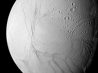 Die Oberfläche des Saturn-Trabanten Enceladus.