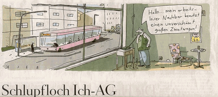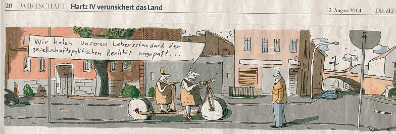 Doch inzwischen räumt selbst die Bundesregierung ein, dass das Armutsrisiko hierzulande größer geworden ist. Der Grund ist schnell ausgemacht: die Zusammenlegung von Arbeitslosenhilfe und Sozialhilfe. »Hartz IV erzeugt Armut" weiß Ulrich Schneider vom Paritätischen Wohlfahrtsverband. Und die Versicherung von Wirtschafts- und Arbeitsminister Wolfgang Clement, niemand werde abstürzen, jeder werde ein Auskommen haben? Dafür hat Schneider nur ein Kopfschütteln übrig.