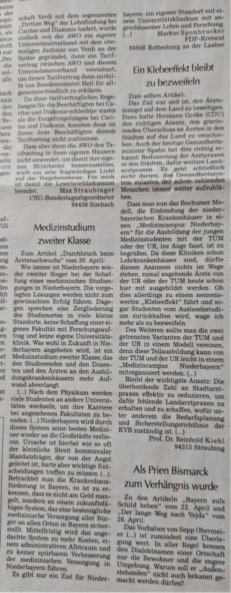 Leserbrief "Klebeeffekt zu bezweifeln", 05.05.2021, auf "Durchbruch beim Ärztenachwuchs", 30.04.2021, Str.Tagblatt