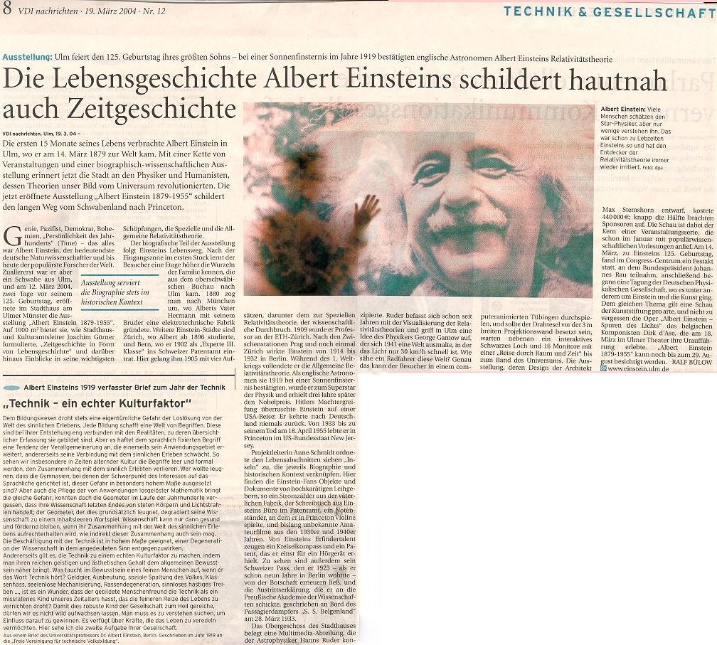 Zum 125.Geburtstag von Albert Einstein: 14.März 1879-14.März 2004 -